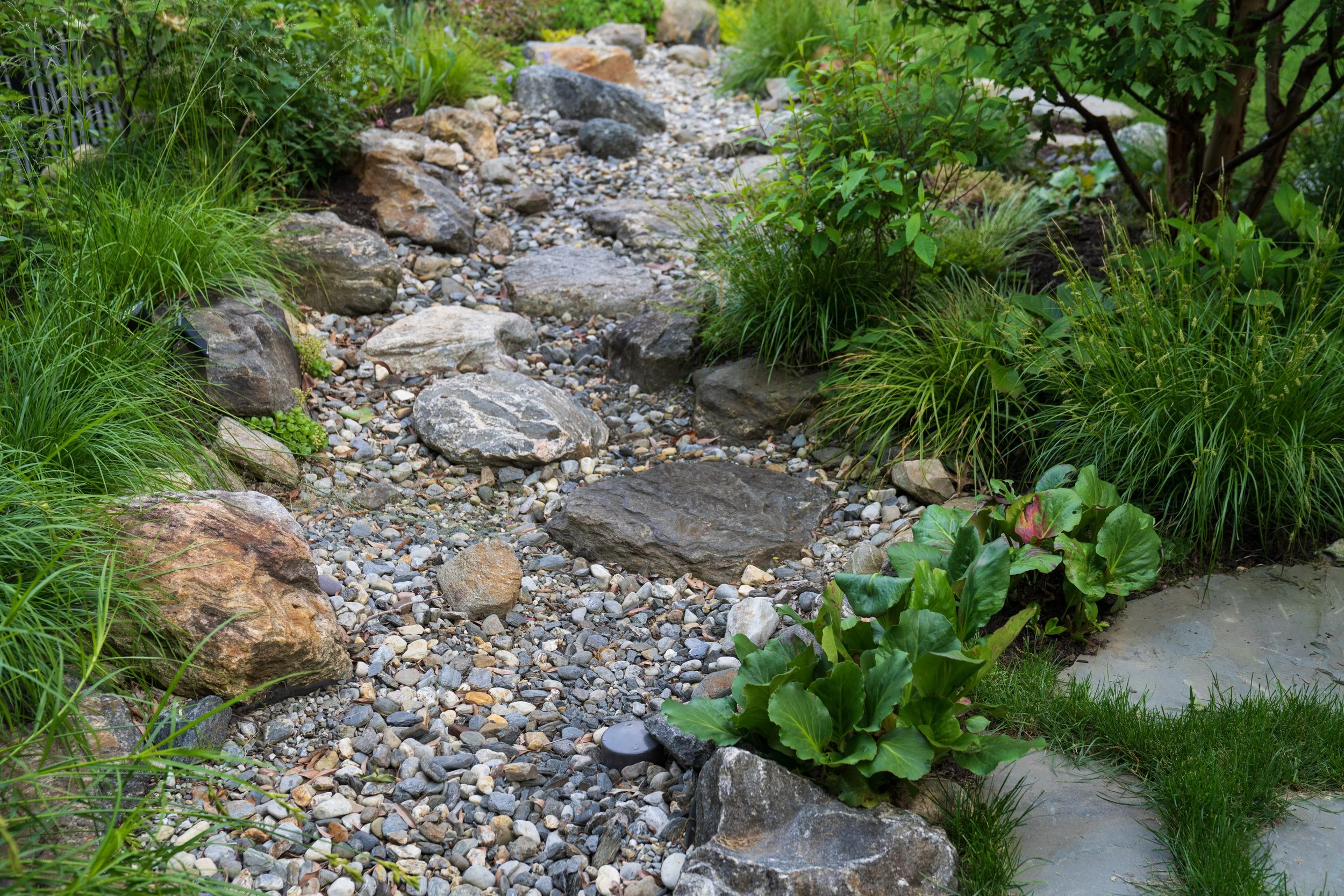 A partially exposed hillside garden designed for reflection, experimentation, and year-round connection — framing distant views of the Hudson River and softening a sunlit west-facing slope with resilient structure and layered seasonal interest.
